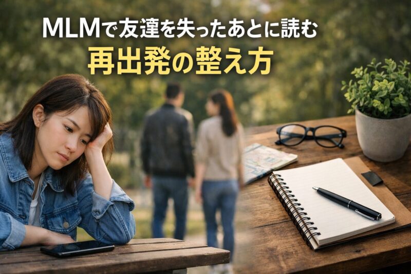 MLMで友達を失ってしまったあと、何から立て直せばいいのかを整理した記事です。人間関係の悪化が起きた理由、謝罪の伝え方、お金と心の回復策、次の働き方の選び方まで、再スタートに必要な視点をまとめています。