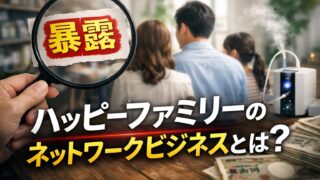 ハッピーファミリーのネットワークビジネスの実態を徹底解説。宗教との関係や水素吸入器の正体、ネタバレ情報、アプリ「ゼノン」など、参加前に知っておきたい情報をわかりやすくまとめました。口コミや退会者の声も紹介!