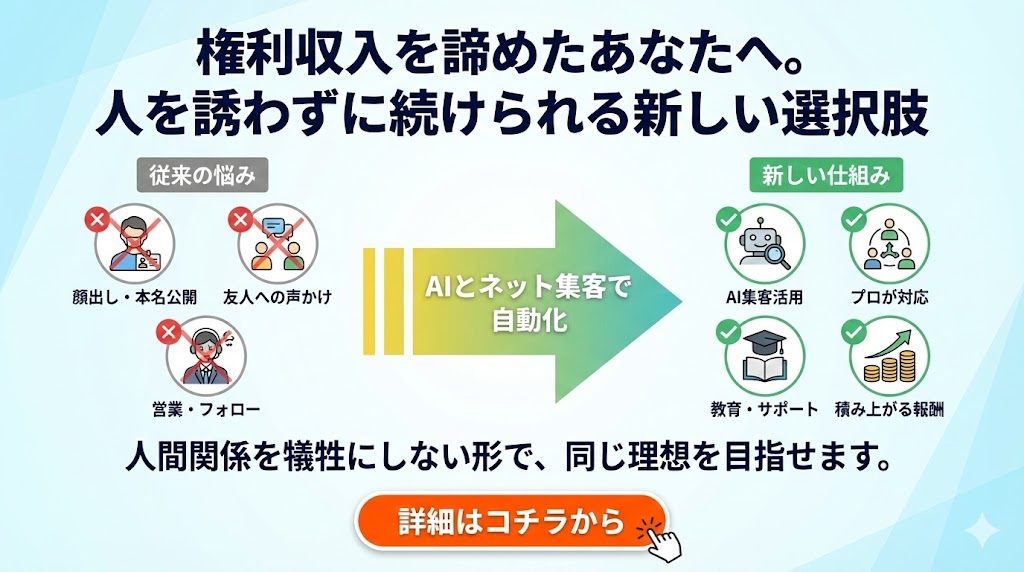 これらのサポートを受けることで、未経験者でもスタートしやすい環境にはなっています。ただし、「教わった通りにやれば必ず成功する」とは限りません。自分の努力と行動が成果につながるのは、どのビジネスでも同じです。