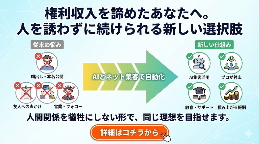 成功している人の多くは、SNSを活用した情報発信や、ターゲットを絞ったマーケティングを行い、「興味を持った人にだけ提案する」スタイルを取っています。こうした工夫ができるかどうかが、稼げるかどうかの分かれ道となります。