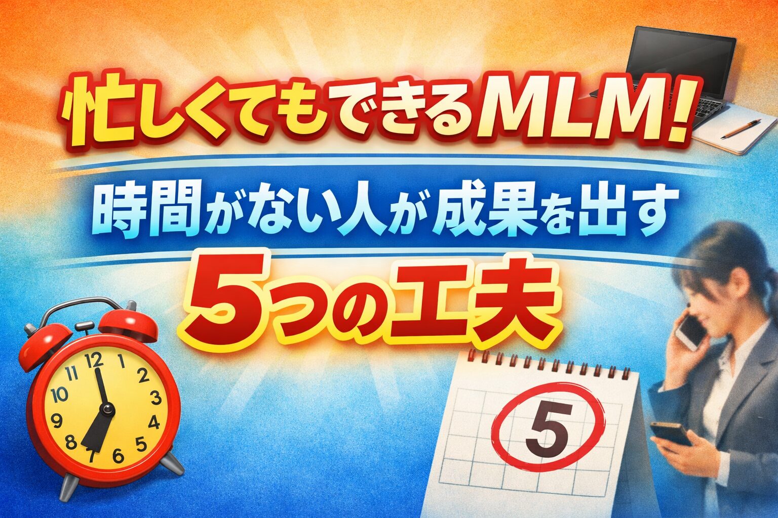 「MLMに興味はあるけど、毎日忙しくてそんな時間ないよ…」そんなふうに感じたことはありませんか?実は、MLMは時間がない人ほど成功しやすいビジネスでもあります。
